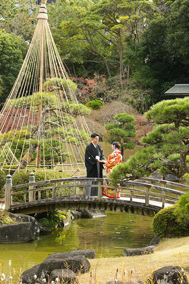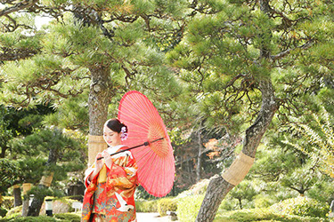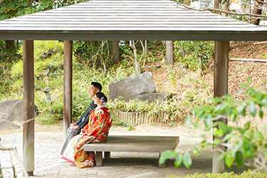 当日雨天:園内屋根の下・番傘・スタジオで撮影