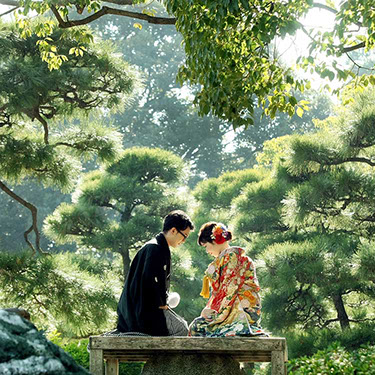 鎮守の杜がフォトウェディングの舞台。イメージや四季に応じた